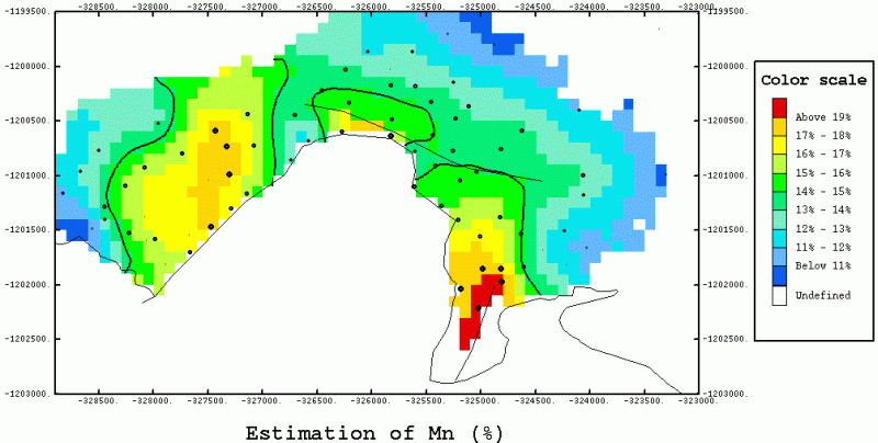 Fig. 4 Map of the Mn grade estimated by ordinary kriging (view in the full resolution)