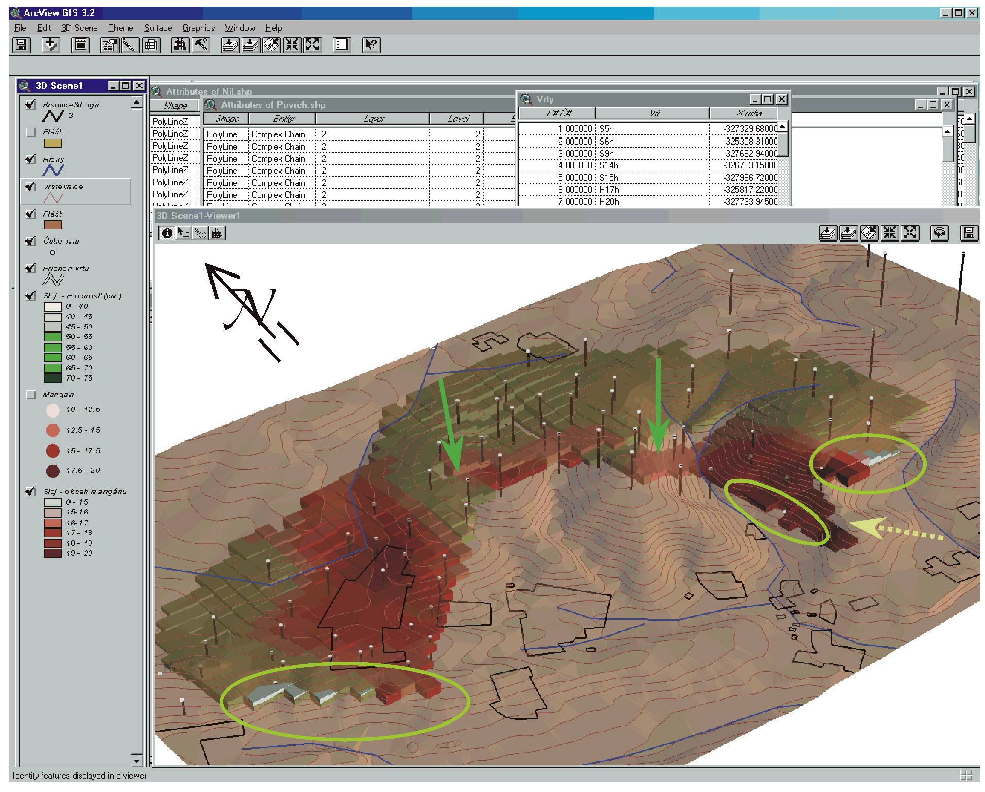 The original and estimated data on the Mn deposit were incorporated into a GIS project. The GIS project was implemented in ArcView 3.2. environment. Below a brief description of the GIS is given.