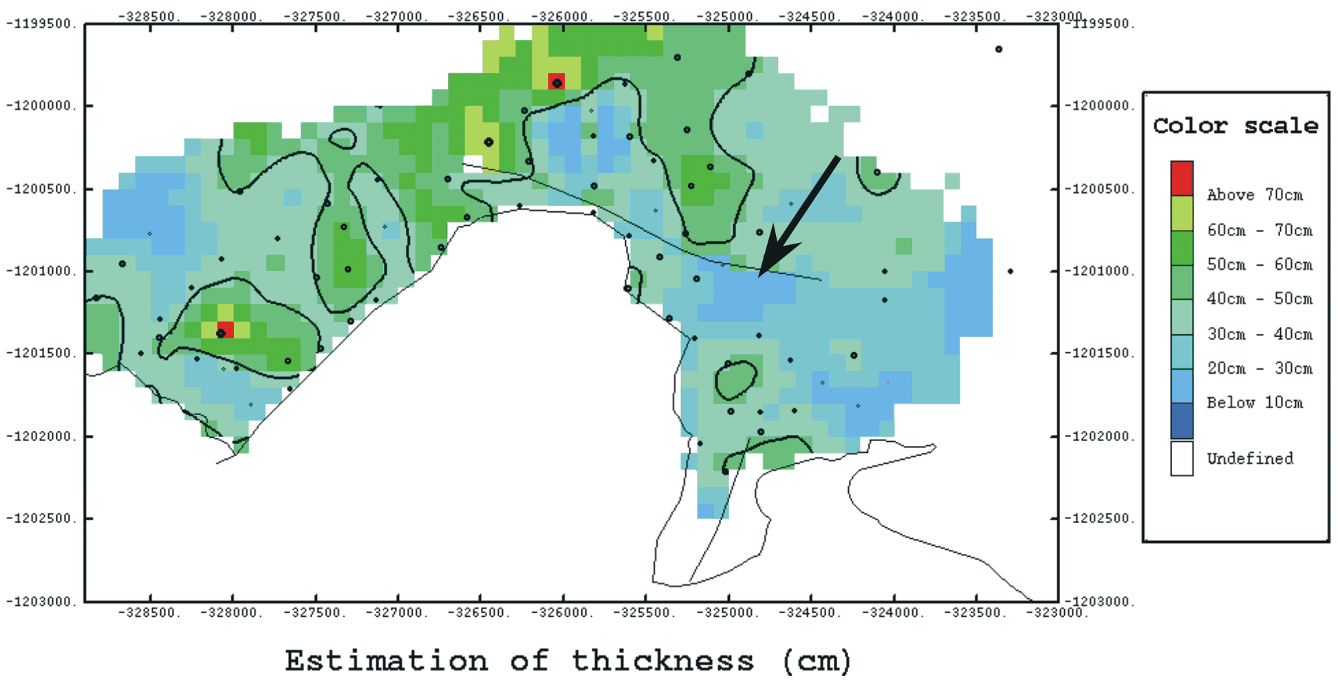 2. Too high thickness variability within too short distances that are due to the geological processes of sedimentation (Fig. 5) that caused an instability of the experimental variogram