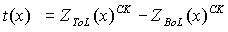 where t(x) is the seam thickness, Z(x) is the elevation a the indexes ToL denote top of the Layer and BoL the bottom of Layer. The CK index represents co-kriging.